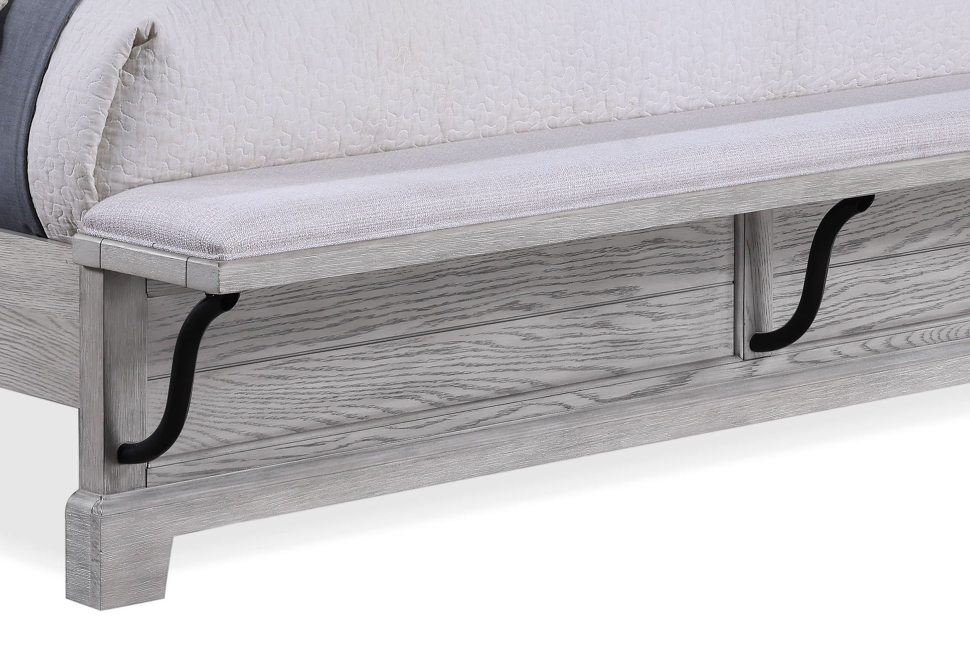 This bedroom suite offers a refreshing take on rustic charm, featuring a soft finish that highlights the natural wood grain. The sturdy bed stands as the centerpiece with its robust headboard and inviting design, while the accompanying pieces — a nightstand, dresser, and chest — provide ample storage, each fitted with understated hardware that accentuates the collection's country-inspired look.