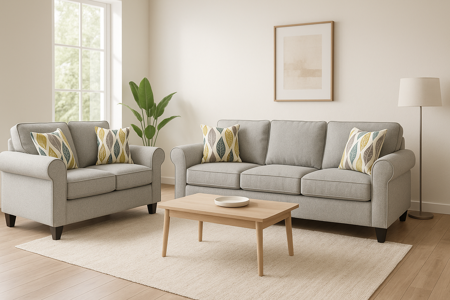 The Bodrum Grey sofa set, in a soft gray, offers timeless elegance and cozy appeal. Proudly American made, it pairs beautifully with any d‚cor style while promising lasting comfort. A classic choice, it enhances both casual gatherings and formal spaces.