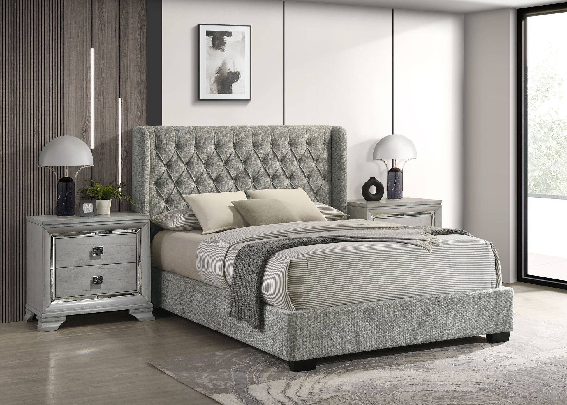 Experience the comfort and elegance of our modern upholstered bed frame, designed to bring a touch of luxury to your bedroom decor. With a stylish tufted headboard and a soft tweed fabric, this bed frame is perfect for contemporary homes looking for a blend of comfort and sophistication.